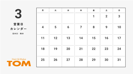 3月営業日【毎日営業】のご案内
